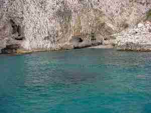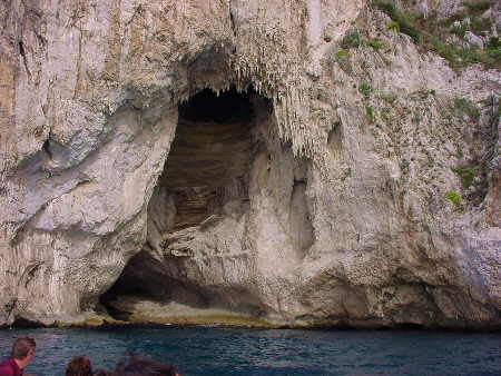 Die “weiße” Grotte von Capri vom Boot aus gesehen.